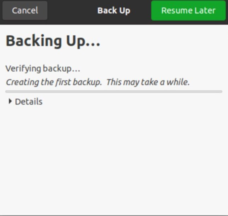 Future backups will be faster because Déjà Dup only saves changes made since the previous backup.